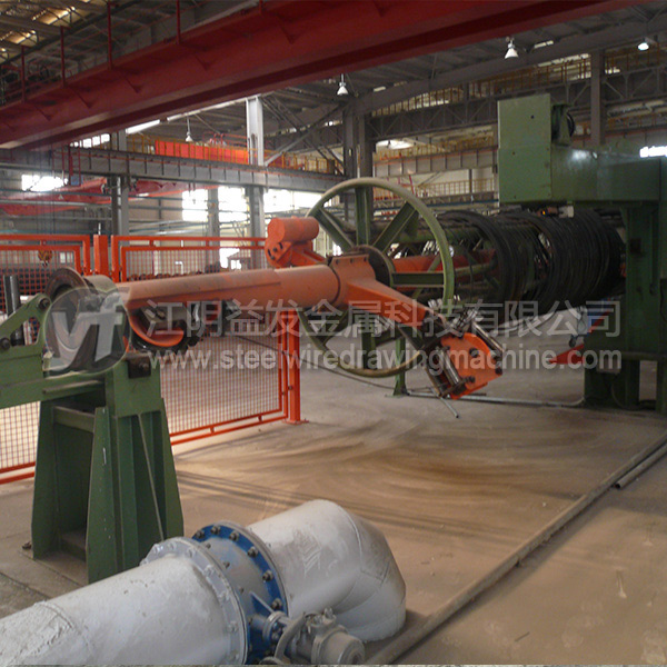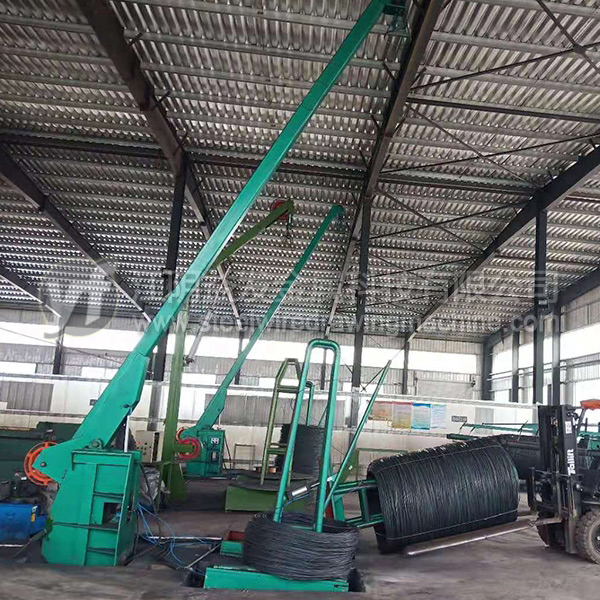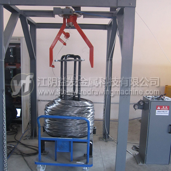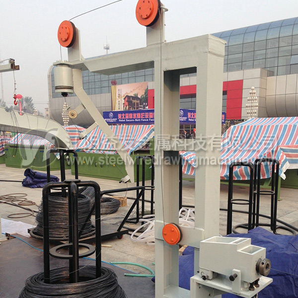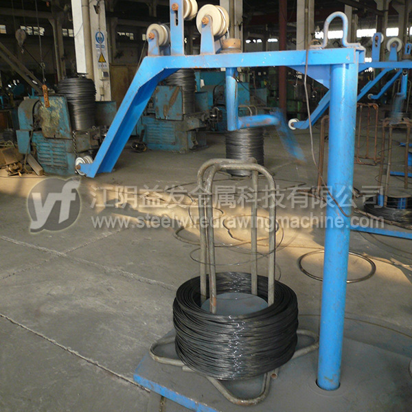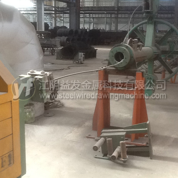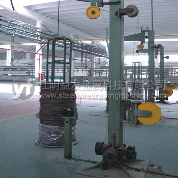 放線架是將原料無(wú)動(dòng)力(被動(dòng)放出),粗線(?8mm)以上通常采用“一”字式放線架,優(yōu)點(diǎn)在于放線不停車、操作高度較低比較安全。中線(≤6.5mm)推薦采用液壓式高架放線,優(yōu)點(diǎn)在于節(jié)約場(chǎng)地、放線不停車、高度達(dá)到9米以上時(shí)亂絲非常少;但是對(duì)于這個(gè)直徑的高碳鋼絲而言,鴨嘴式放線架雖然使用場(chǎng)地比較大,效果也可以的。細(xì)絲的放線一般用上抽式放線架,尤其對(duì)于退火后的細(xì)絲,就必須使用一些特殊的裝置才能確保亂絲少。工字輪放線是*好的方式,但是因?yàn)橛猛镜南拗疲@種方式不能全部使用。