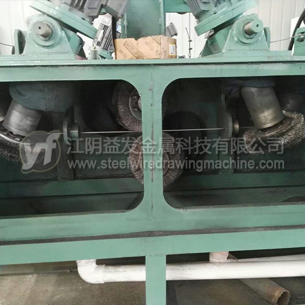 *嚴(yán)重的缺陷是鋼絲表面刷光后難以拉拔,鋼絲攜帶潤(rùn)滑粉較少,模具消耗量急劇增加,所以通常與砂帶拋光機(jī)結(jié)合使用,這樣既能100%去除銹蝕層,又能在鋼絲表面形成螺紋狀的凹痕,這些凹痕填滿(mǎn)潤(rùn)滑粉進(jìn)入模具,拉絲效果媲美涂硼或者磷化。